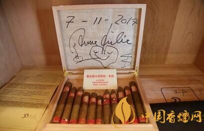 著名煙斗師安麗·朱莉從業(yè)50周年時出品的一款中國雪茄限量版集成裝,里面包含了中國四家雪茄煙廠的限量版雪茄,并有安麗·朱莉的親筆簽名。