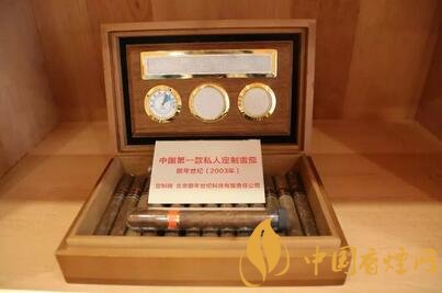 中國第一款私人定制雪茄“頤年世紀(jì)”(2003年)。