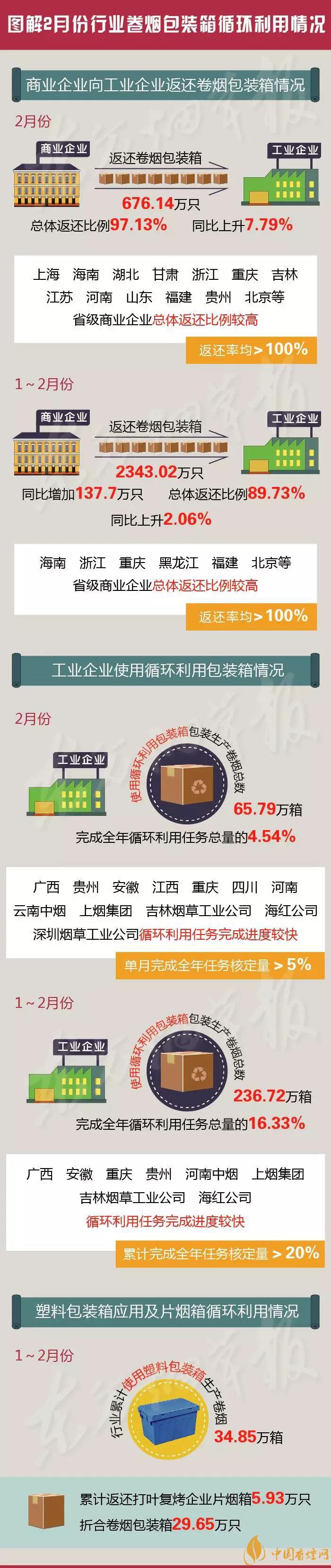 3月15日,國家煙草專賣局通報了2月份行業(yè)卷煙包裝箱循環(huán)利用情況。詳情如何?一圖速覽↓↓↓(圖來源于東方煙草報)