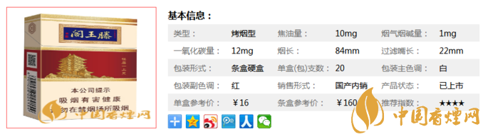 類型 :烤煙型 焦油量 :10mg 煙氣煙堿量 :1mg 一氧化碳量 :12mg