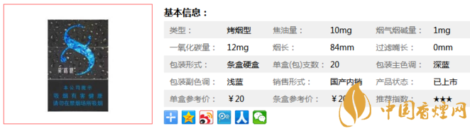 這款煙定位是涼煙,口味淡,抽完之后,不會在衣服上留煙味,既解了煙癮又不會讓家人發(fā)現(xiàn),性價比高,非常不錯。經(jīng)香煙網(wǎng)小編市場調(diào)查這款煙價格為20元/包。