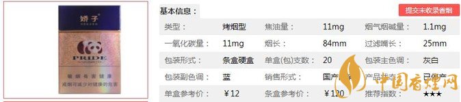 | 類型 :烤煙型 | 焦油量 :11mg | 煙氣煙堿量 :1.1mg | 一氧化碳量 :11mg |