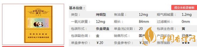 三、嬌子硬大金元香煙參數(shù)
