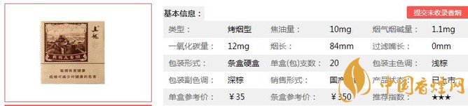 | 類型 :烤煙型 | 焦油量 :10mg | 煙氣煙堿量 :1.1mg | 一氧化碳量 :12mg |