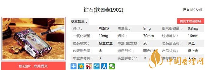 三、鉆石軟景泰1902香煙參數(shù)