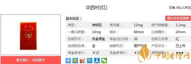 華西村紅傳承了蘇系香煙的特點,以煙氣細膩柔和中,充滿著平和的醇厚感,征服了大量和煙客。在中國華西村香煙價格表圖中它們銷量好,口碑也非常不錯。經(jīng)香煙網(wǎng)小編市場調(diào)查華西村紅售價為15元/包。