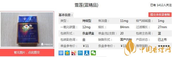 三、雪蓮藍(lán)精品香煙參數(shù)