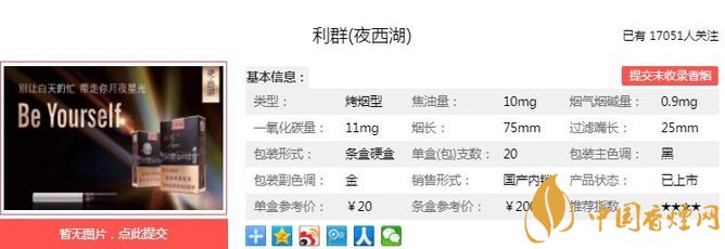 以上便是由香煙網(wǎng)小編為大家介紹的關(guān)于2018年利群上市新品 利群夜西湖售價(jià)20元一包的相關(guān)信息,想要了解更多有關(guān)內(nèi)容請(qǐng)點(diǎn)擊:一品梅特長(zhǎng)口感醇和飽滿濃馥悠長(zhǎng) 價(jià)格15元一包