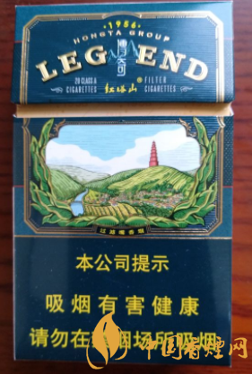 紅塔山傳奇設計非常有特點,整體風格有種西洋的感覺,煙盒正面以墨綠色為基調,被一條細金線分兩部分,上部分正中央就是彩印的紅塔山圖案了,紅塔青山,藍天白云,村莊農田,圖案的兩側被綠色的煙葉包裹起來,天高云舒,紅塔在山頂佇立,包裝整體十分有特色。
