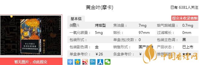 三、黃金葉摩卡香煙參數(shù)