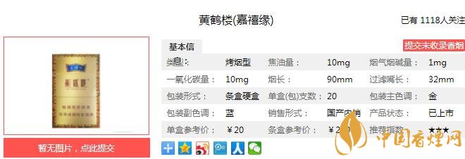三、黃鶴樓嘉禧緣香煙參數(shù)