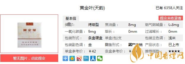 黃金葉天韻煙支長(zhǎng)84mm,過(guò)濾嘴長(zhǎng)32mm,汲取了我國(guó)傳統(tǒng)高檔烤煙型產(chǎn)品的精髓,并運(yùn)用成熟的綜合降焦減害技術(shù),使產(chǎn)品的焦油量降至每支8mg,充分體現(xiàn)了消費(fèi)者對(duì)健康與生活品質(zhì)的追求。減少了對(duì)健康的危害。下面我們一起來(lái)看黃金葉天韻的參數(shù)信息:焦油量:8mg 煙堿量:0.8mg 一氧化碳量:9mg