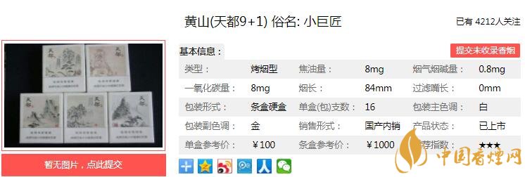 三、黃山(天都9+1)香煙參數(shù)