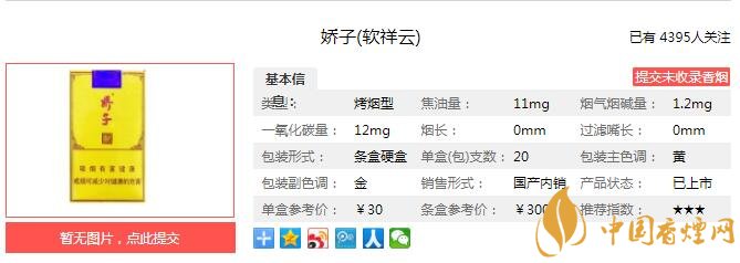 三、嬌子軟祥云香煙參數(shù)