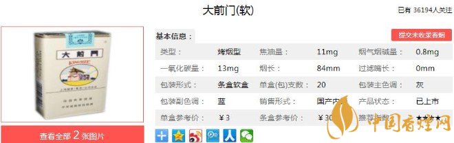 以上便是香煙網小編為大家介紹的關于跨越百年的民國煙品,軟大前門香煙如今還是原來的價格的相關信息,看完之后大家是不是對于大前門(軟)的相關信息更加了解呢。大家還想查詢更多的相關內容歡迎點擊:短支大前門多少錢一包 大前門短支香煙價格表