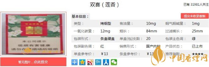 以上便是香煙網(wǎng)小編為大家介紹的關(guān)于結(jié)婚辦喜事的首選香煙,雙喜蓮香價格及口感分析的相關(guān)信息,看完之后大家是不是對于雙喜(蓮香)的相關(guān)信息更加了解呢。大家還想查詢更多的相關(guān)內(nèi)容歡迎點擊:雙喜經(jīng)典工坊多少錢一包 雙喜經(jīng)典工坊口感及參數(shù)介紹