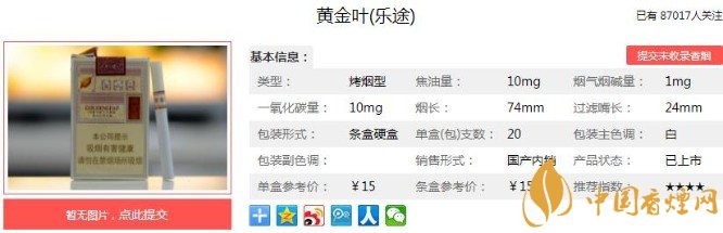 以上便是香煙網小編為大家介紹的關于黃金葉價格及口感分析,包裝是最閃亮的點!的相關信息,看完之后大家是不是對于黃金葉(樂途)的相關信息更加了解呢。大家還想查詢更多的相關內容歡迎點擊:黃金葉小黃金好抽嗎 黃金葉小黃金價格及參數介紹