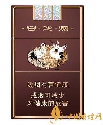煙盒整體是朱褐色,四邊有兩條的細(xì)長的金邊,翻蓋處是“白沙煙”3個(gè)金色漢字,每個(gè)字中間間隔“精品香煙”4個(gè)字。中間是白沙香煙經(jīng)典的白沙鶴舞圖,兩只白鶴閑庭信步,獨(dú)立展翅,配上背景金色的波濤和白沙古井字樣,整個(gè)場景顏色搭配巧妙,刻畫細(xì)致,白鶴描繪傳神,讓人不由細(xì)細(xì)觀賞。