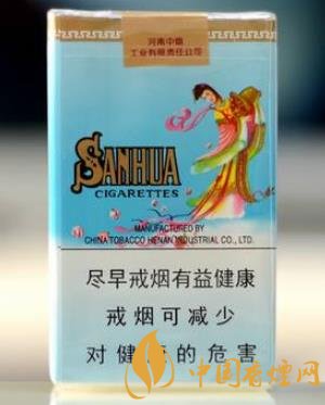 煙盒正面包裝以藍(lán)天白云為背景,從藍(lán)天灑下朵朵紅花,背面一位婀娜多姿的古代美女輕盈的站在白云之上,從花籃中灑下美麗的花朵,寓意著給民間帶來(lái)風(fēng)調(diào)雨順,國(guó)泰民安,與正背面金色的散花漢字以及SANHUA漢語(yǔ)拼音共同構(gòu)成了一幅美麗的賞心悅目的畫(huà)面。