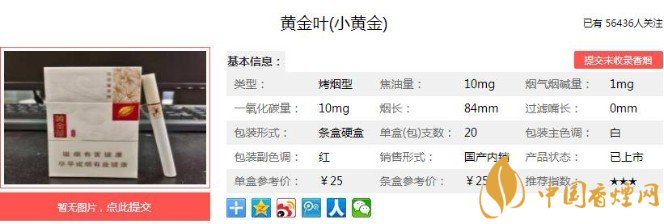 黃金葉小黃金價格公道口感好超過同價位香煙!