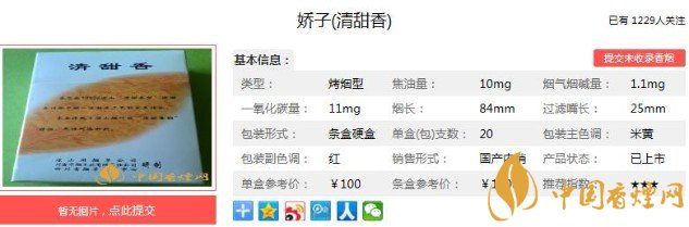 以上便是香煙網(wǎng)小編為大家介紹的關于嬌子清甜香多少錢一包 嬌子清甜香價格及口感評析的相關信息,看完之后大家是不是對于嬌子(清甜香)這款香煙的相關信息更加了解呢。大家還想查詢更多的相關內(nèi)容歡迎點擊:盤點嬌子系列口感最好的五款香煙 嬌子精品上榜