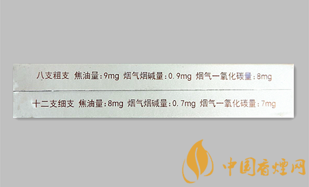 | 類(lèi)型 :烤煙型 | 焦油量 :9mg | 煙氣煙堿量 :0.9mg | 一氧化碳量 :9mg |