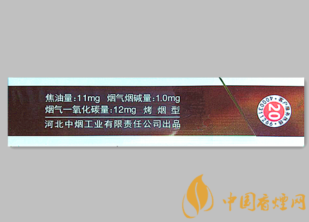 類型 :烤煙型 焦油量 :11mg 煙氣煙堿量 :1mg 一氧化碳量 :12mg