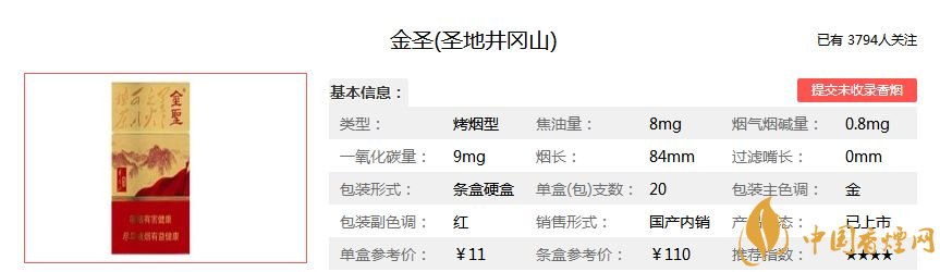 相信煙民們在日常買煙的時候,都看到過金圣這個香煙品牌,你知道幾款金圣香煙。香煙網(wǎng)今天介紹一款金圣系列的圣地井岡山香煙。金圣圣地井岡山多少錢一包?圣地井岡山香煙好抽嗎?為了讓大家對這款金圣香煙有更多了解,下面是圣地井岡山香煙的價格及圖片介紹,快和小編一起看看吧!