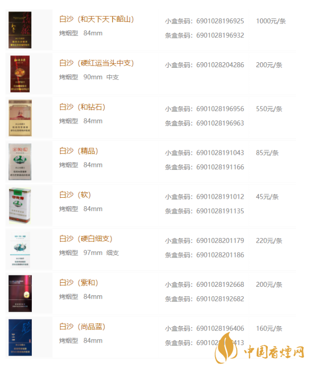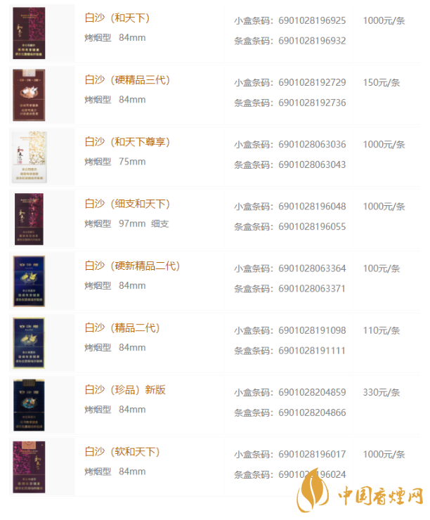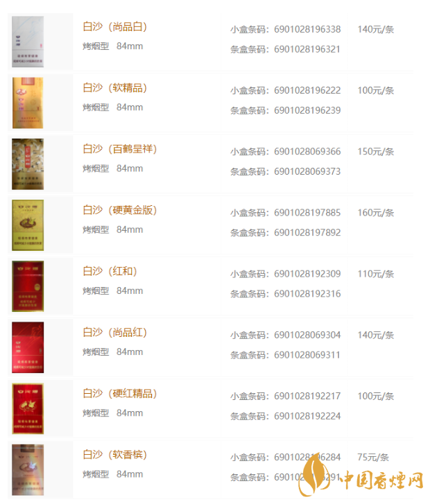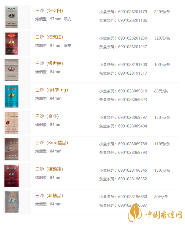 白沙香煙價(jià)格表和圖片