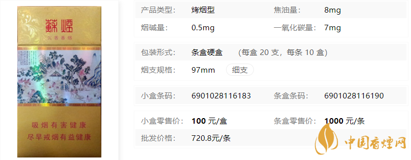 類型 :烤煙型 焦油量 :8mg 煙氣煙堿量 :0.5mg 一氧化碳量 :7mg