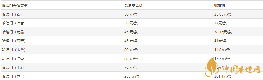 哈德門香煙價格表圖片2021最新批發(fā)價一覽
