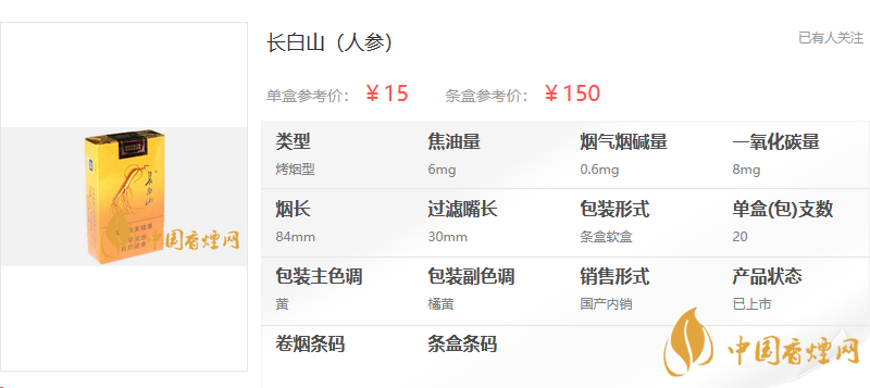 【長白山人參香煙價格表和圖片一覽 長白山人參香煙多少錢一包】相關(guān)推薦文章: