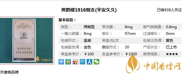 以上內(nèi)容是由香煙網(wǎng)小編來收集以及整理的,黃鶴樓1916久久平安多少錢一包相關(guān)的內(nèi)容,了解更多相關(guān)信息請點擊:最新1916香煙回收價格行情一覽。