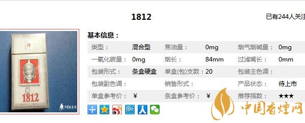 以上內(nèi)容是由香煙網(wǎng)小編為大家收集以及整理的關(guān)于,1812煙多少錢一包相關(guān)信息,想要了解更多信息詳情請(qǐng)點(diǎn)擊:銷量最好外煙品牌。