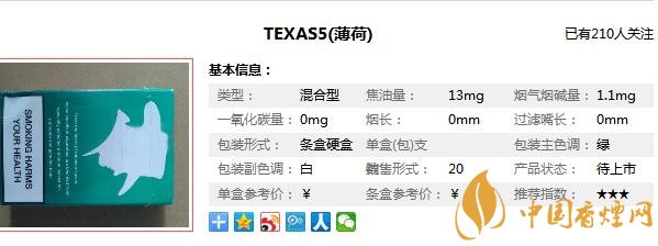 德州5號香煙參數(shù)信息