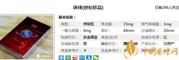 環(huán)球牌香煙參數(shù)信息
