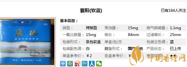襄陽牌香煙多少錢一包 襄陽牌香煙價(jià)格2元/包