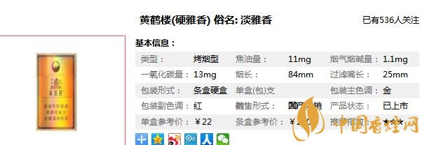 黃鶴樓硬雅香參數(shù)信息