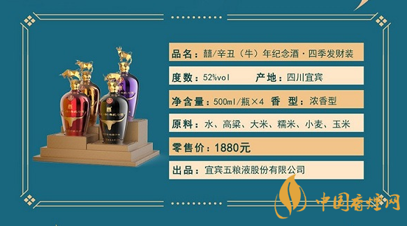 五糧液辛丑(牛)年紀念酒.四季發(fā)財裝,瓶蓋 頂立如牛,切割金屬牛以金屬材質(zhì)潛心鑄造四種靈敏聚財?shù)慕鹋P螒B(tài)!瓶身 金牛頭,采用浮雕工藝,將牛年傳統(tǒng)生肖結(jié)合,鴻運當(dāng)頭照,宜賓五糧液有限公司:囍酒!瓶底 電鍍工藝質(zhì)感,細致浮雕防滑!五糧液辛丑(牛)年紀念酒.四季發(fā)財裝京東售價1880元。