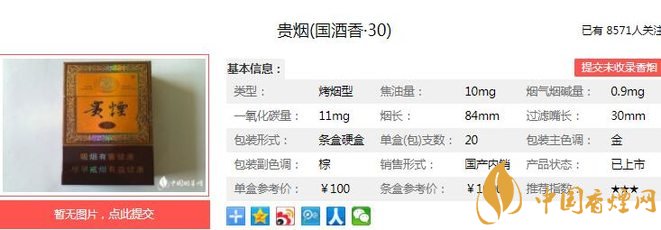 貴煙國(guó)酒香30品吸時(shí)將煙和酒兩種口感結(jié)合起來,給人一種全新的口感享受。讓業(yè)界側(cè)目的是,自貴煙(國(guó)酒香·30)率先上市后第一時(shí)間便取得了喜人銷量和良好口碑,產(chǎn)品供不應(yīng)求。經(jīng)香煙網(wǎng)小編市場(chǎng)調(diào)查貴煙國(guó)酒香30售價(jià)為100元/包。