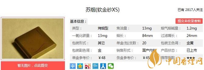 三、蘇煙軟金砂XS香煙參數(shù)