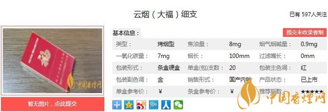三、云煙大福細支香煙參數(shù)