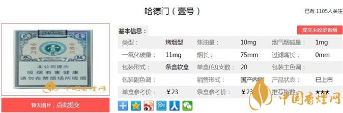 哈德門(mén)(壹號(hào))煙支長(zhǎng):75mm,烤煙型,包裝形式:條盒硬盒(每盒 20支,每條 10 盒)?!俄f氏詞典》說(shuō)對(duì)某段往日時(shí)光的愁悶或極度感傷的緬懷或回溯之情,這也是山東中煙的一張情懷牌。我們一起來(lái)看哈德門(mén)(壹號(hào))的參數(shù)信息:焦油量:10mg 煙堿量:1.0mg 一氧化碳量11mg