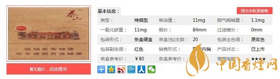 | 類(lèi)型 :烤煙型 | 焦油量 :11mg | 煙氣煙堿量 :1.1mg | 一氧化碳量 :11mg |