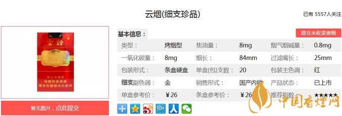 三、云煙細(xì)支珍品香煙參數(shù)
