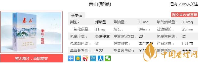 一、泰山新品香煙價格