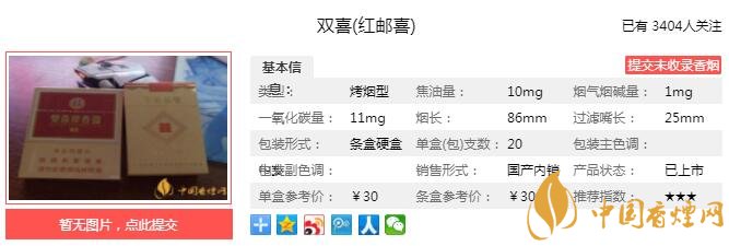 一、 雙喜紅郵喜香煙價格
