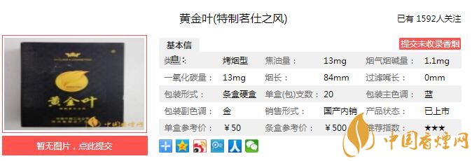 三、黃金葉茗仕之風(fēng)香煙參數(shù)