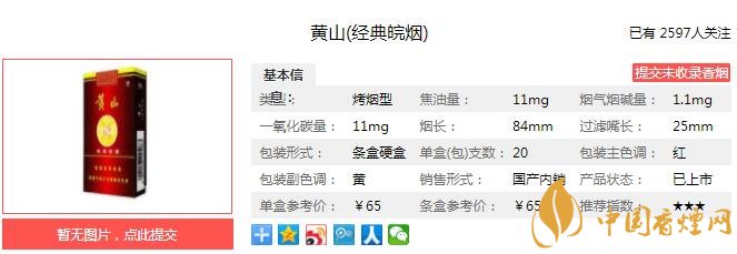 煙氣細(xì)膩柔和,成團(tuán)性好,香氣質(zhì)較好,較優(yōu)雅,透發(fā)性好,香氣量較充足,協(xié)調(diào)性好,口感較好,余味舒適。上市以來很受消費(fèi)者的歡迎,只是如今歸于黃山旗下也不知是否已停產(chǎn),早聽聞是款好煙可惜難覓蹤跡。經(jīng)香煙網(wǎng)小編市場調(diào)查黃山經(jīng)典皖煙售價為65元/包。