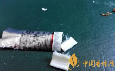 剪開鏤空樣式的過濾嘴,會發(fā)現有一層薄薄的黃色紙張,附著于過濾嘴紙張之上。鏤空過濾嘴的長度,約為6mm。